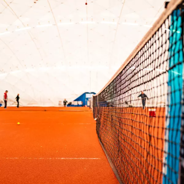 Mit Indoor-Tennisplatz unabhängig von der Witterung, Wind-, Sonnen- und Regeneinfluss