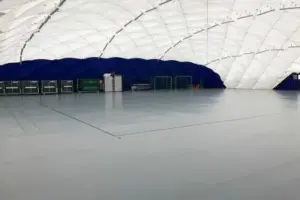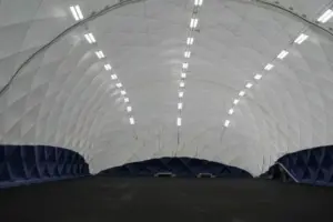 Unsere PARANET-Tragluftfallen trotzen jeder Witterungslage. Durch modernste Technik wird die Standfestigkeit gesichert. Ein automatisierter Windmesser überwacht die auf die Traglufthalle treffenden Windstärken. So wird der Hallendruck bei Bedarf frühzeitig auf 300 Pascal erhöht. Auch Blitzeinschläge kann die PARANET-Traglufthalle problemlos durch ihre Konstruktion abwehren und über das rautenförmige Drahtseilnetz und die Bodenanker ableiten.