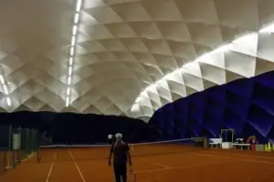 Mit Indoor-Tennisplatz unabhängig von der Witterung, Wind-, Sonnen- und Regeneinfluss