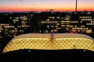 Das lasergestützte Schnee-Warn-System erkennt frühzeitig das Schneeaufkommen und sorgt durch eine automatische Erhöhung der Hallentemperatur für ein direktes Abschmelzen des Schnees. So wird verhindert, dass sich Schneelasten auf der Hallenmembran bilden können.
